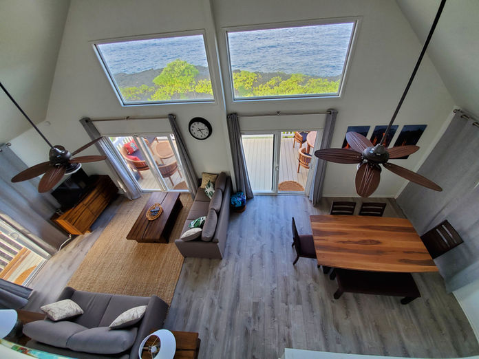 Welcome to Hale Kailani, our Sea and Sky House. This home is situated on a half acre in the Hawaiian Paradise Park development just south of Hilo. Parking is in the driveway along side the house. Enjoy 2 bedrooms and one full bath on the lower level and a large loft with a 3/4 bathroom on the upper level. Living room and dining room have sliding glass doors on to a good sized lanai that is perfect for grilling. This home includes a monitored security system with 3 exterior cameras that you may use upon request, otherwise the alarm system will be disarmed during your stay - the 3 exterior cameras remain on. Included for your use are Blaze BBQ grill, books, DVDs, puzzles, games, snorkels and masks, cooler, head lamps, water floats, fishing pole with gear and folding chairs that are perfect for taking out to the cliff edge to watch the sea turtles.